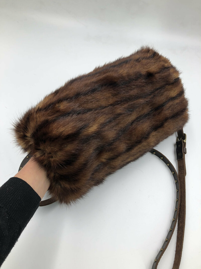 Brown winter mink fur muff with regular belt handmade. Good condition.
